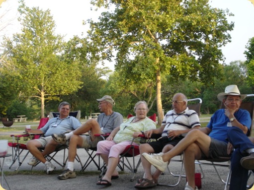 Caroline, Dave, ??, ??, Phil, Manuel and Ed sit around and visit.