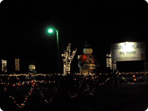 Tonight, Wednesday, we took a few pictures as we returned from dinner. Mark and Sue arrived on Tuesday. We met George and Janet for dinner and then went to the Lambes' to play cards. We had a nice evening. The RV Park is beautifully decorated.